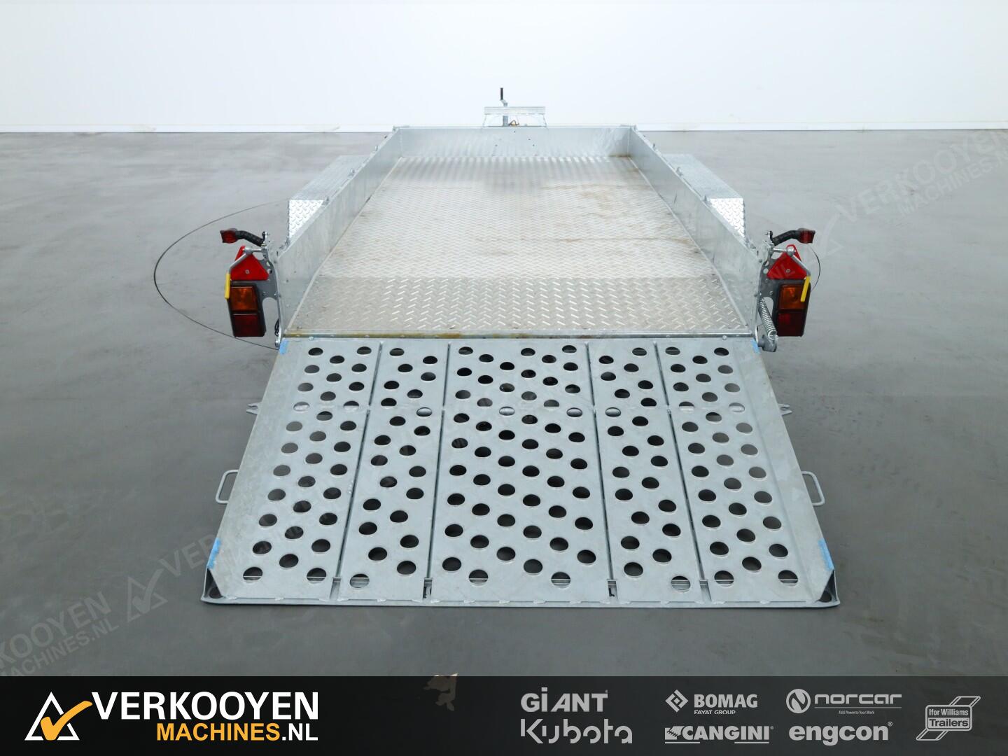 Schitterende machinetransporter van Ifor Williams, uit de GH-serie. Deze wagens kenmerken zich door een zeer sterke stalen opbouw. Deze wagens hebben een afgeschuinde achterkant, en i.c.m. de oprijklep, en de lage laadvloer, krijg je een zeer gunstige oprijhoek. De wagens zijn bladgeveerd. Dit is zeer geschikt voor het veilig/- en comfortabel vervoeren van machine's. Er zijn vele vastzetpunten aanwezig om uw machine goed en veilig vast te zetten. De spatborden zijn van dik staal, met antislip. Voor het spatbord zit een op/- afstap geintegreerd. U kunt de wagen verder aanvullen met diverse optie's zoals een reservewiel, antidiefstalslot of een aluminium vloer.